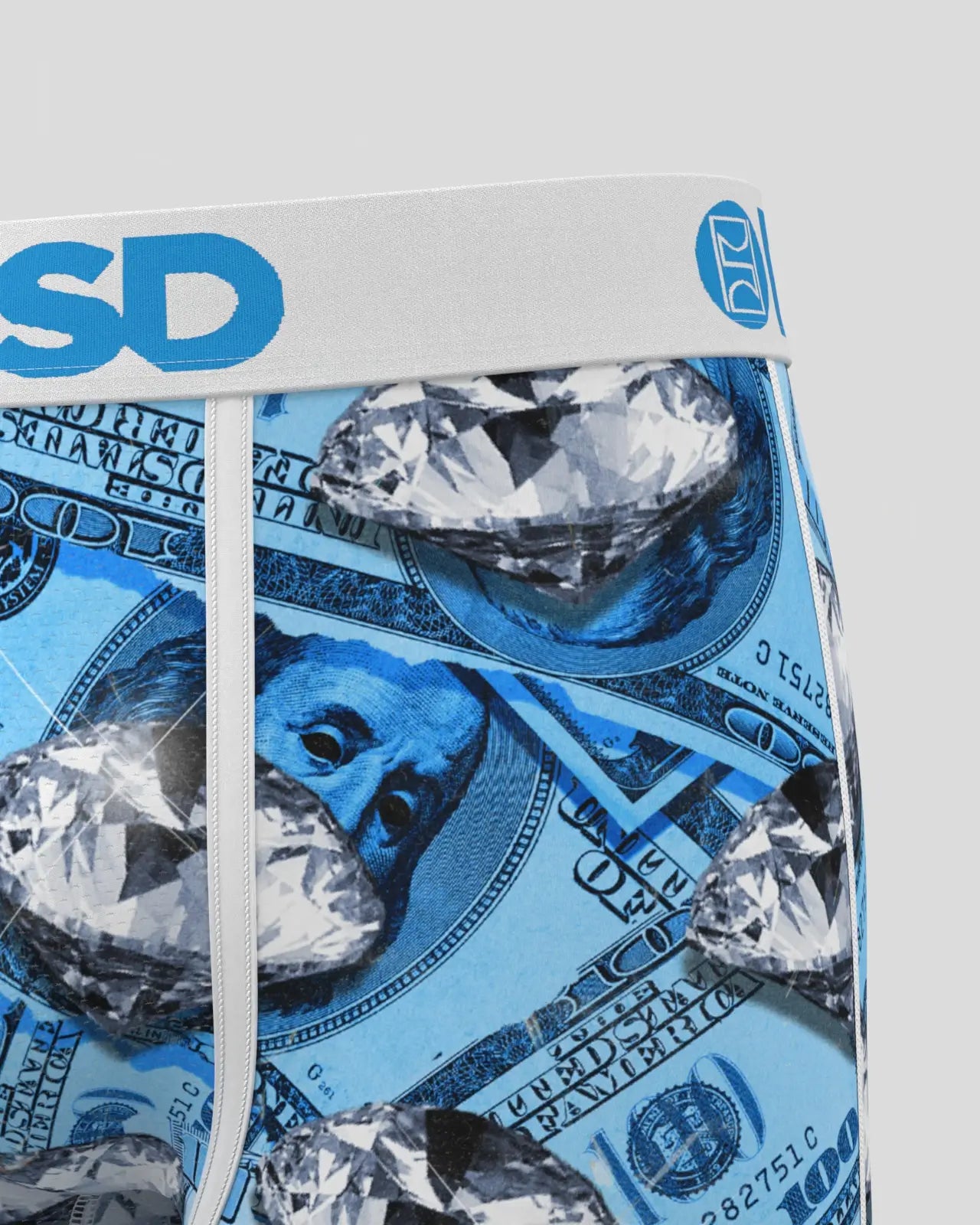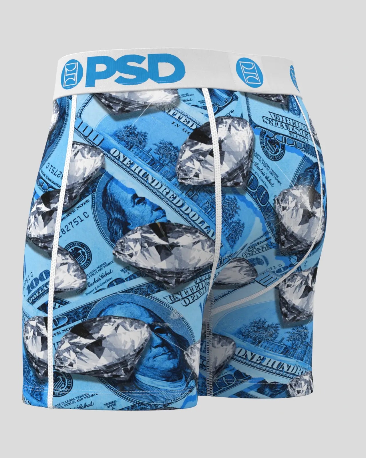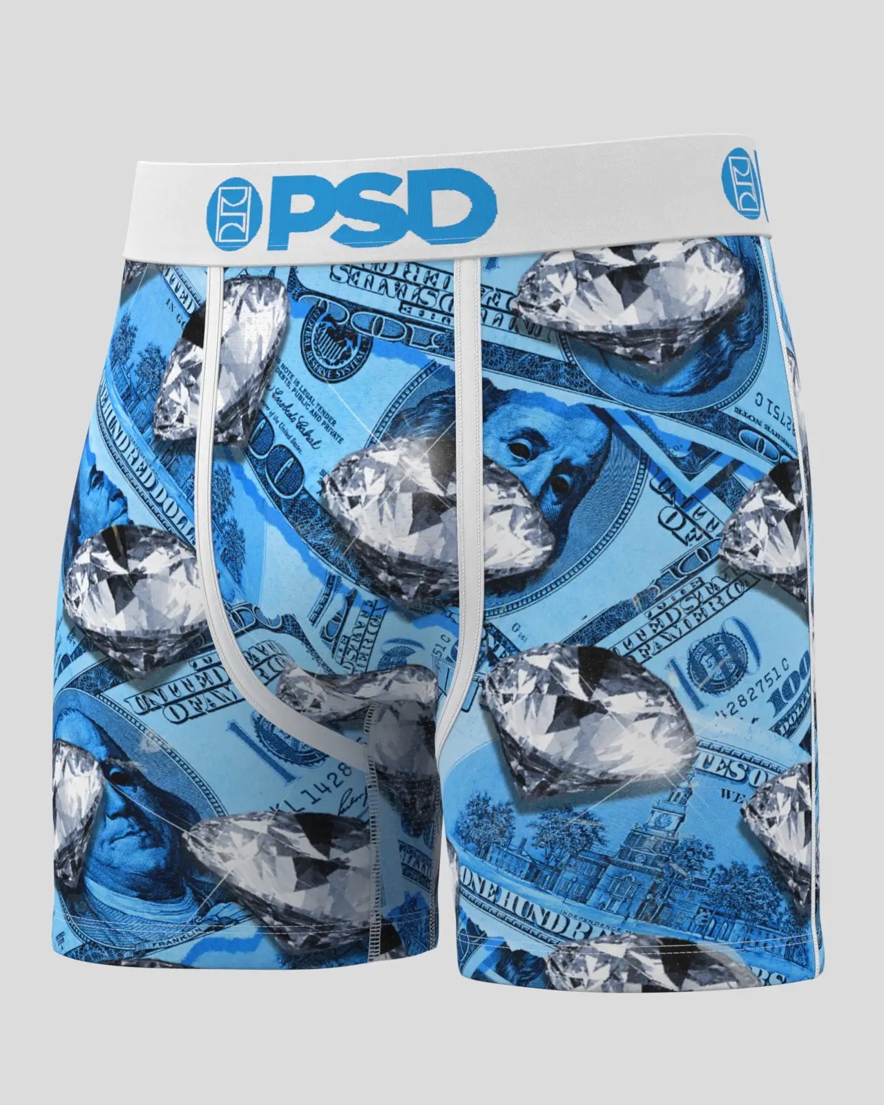Don’t fumble the bag?acash in with this new pair. The Blue Fortune briefs include our ultra-comfortable Signature WaistBand, a breathable MicroMesh pouch, and four-way stretch. The PSD 5??? Mid Length Briefs won’t roll or ride and were built for everything, from everyday wear to your toughest workouts.