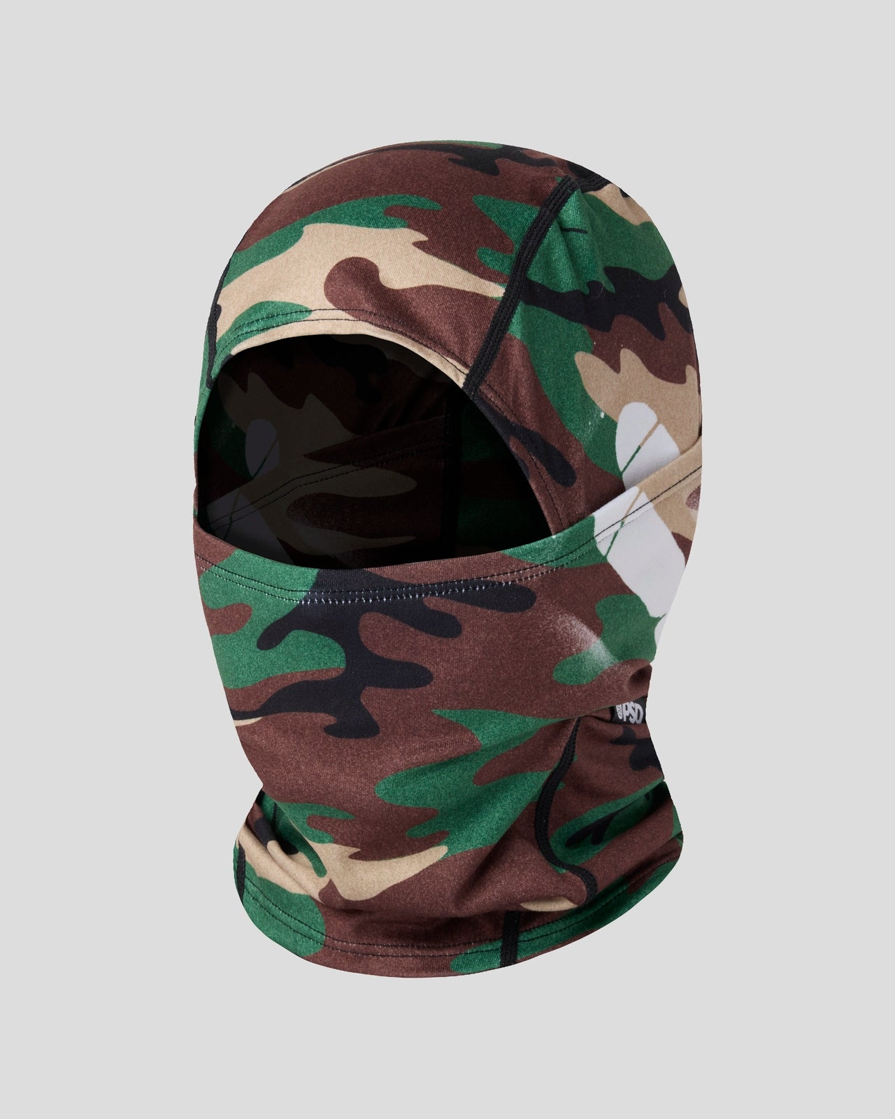 Featuring a camo print, the Bomber Hooded Mask pairs street style with cold-weather comfort. Made of a breathable poly blend brushed on the inside for an extra soft feel on the face, the mask has flat seams and can also be worn as a neck gaiter.