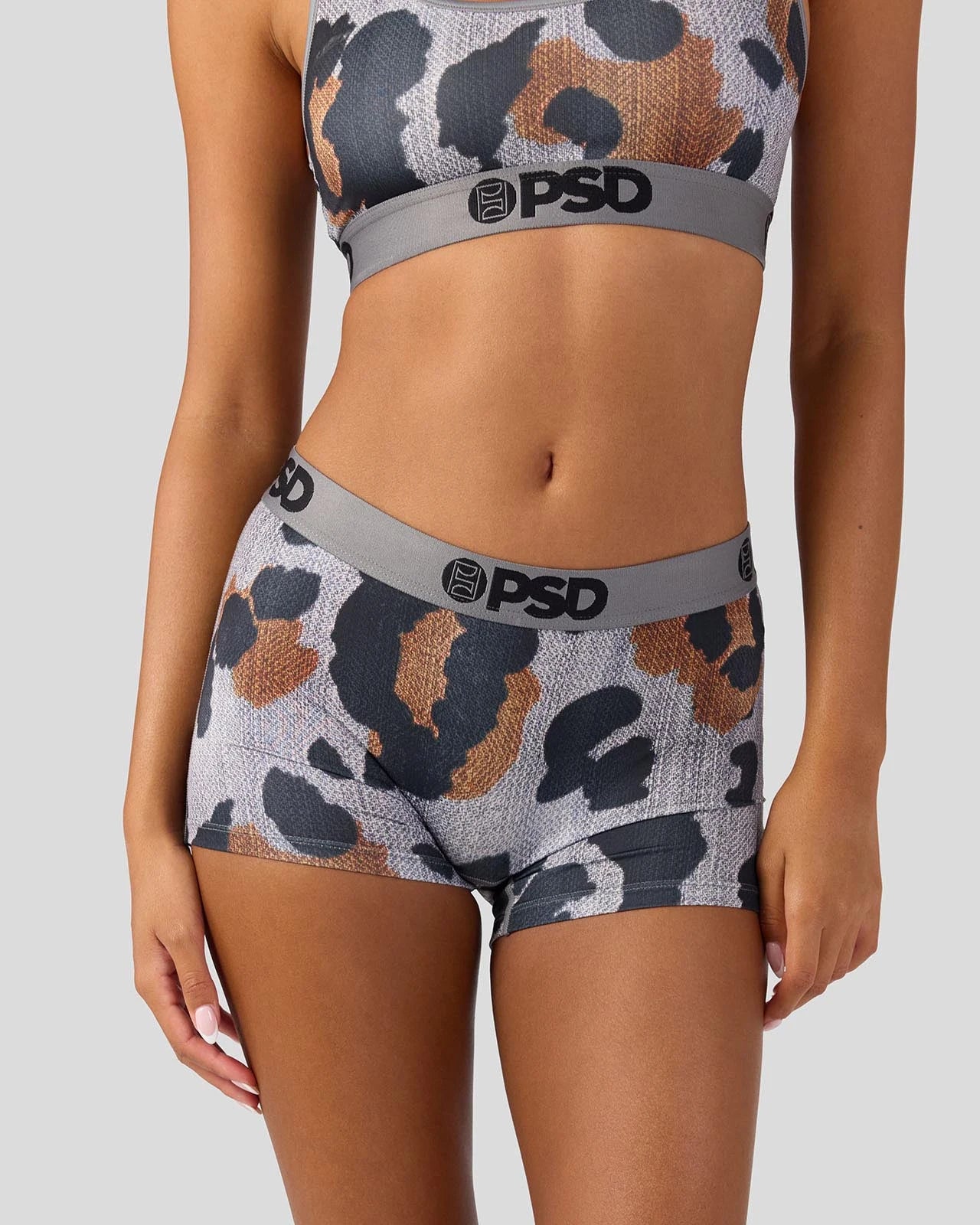 Take a walk on the wild side. The Denim Cheetah Boy Short is made from a silky poly blend with a comfortable full-coverage, keep-you-in fit. The PSD boy shorts are perfect for everyday wear and working out.