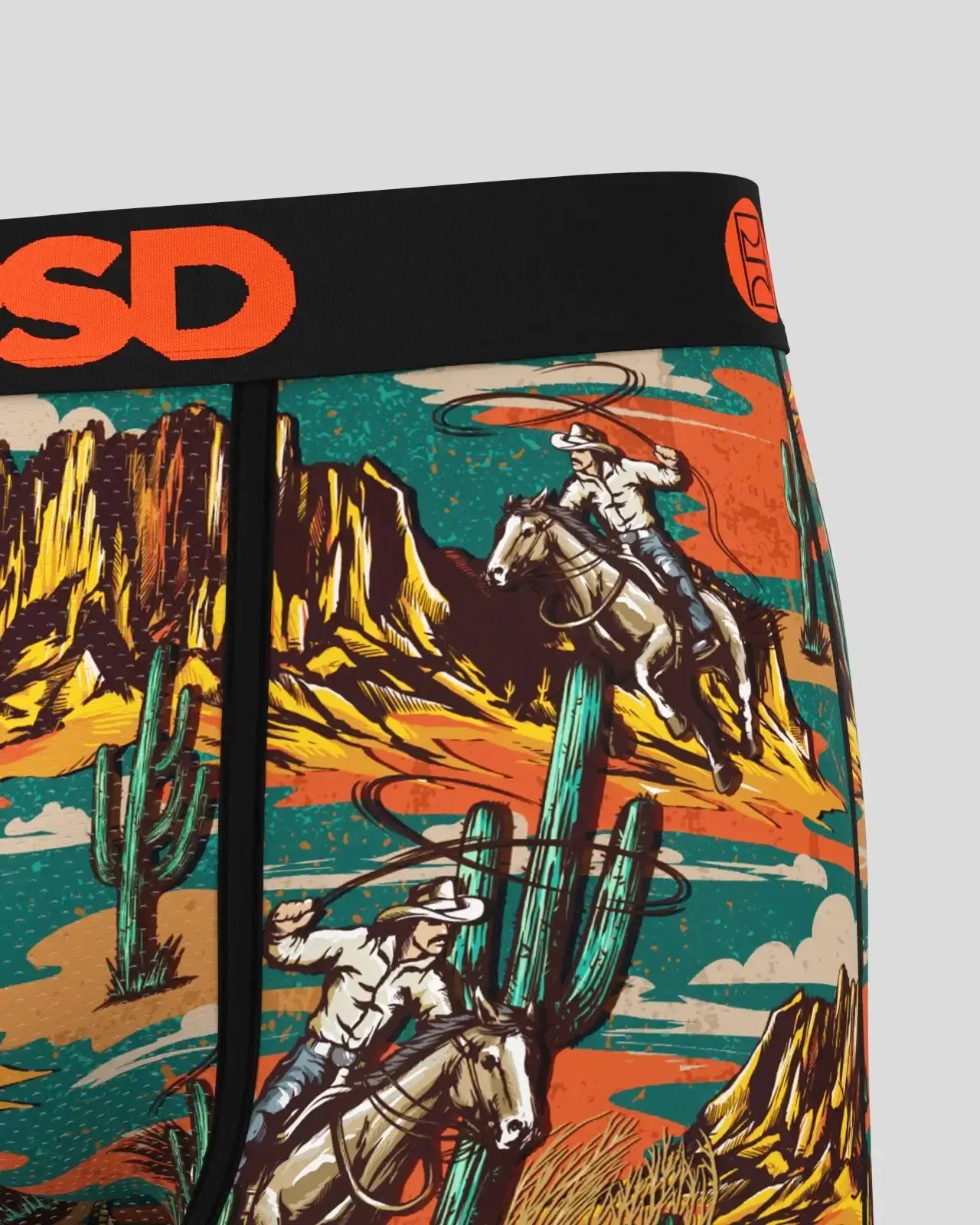 Find your giddy up in this new Western-inspired pair. The Deserted briefs include our ultra-comfortable Signature WaistBand, a breathable MicroMesh pouch, and four-way stretch. The PSD 7??? Standard Length Briefs won???t roll or ride and were built for everything, from everyday wear to your toughest workouts.