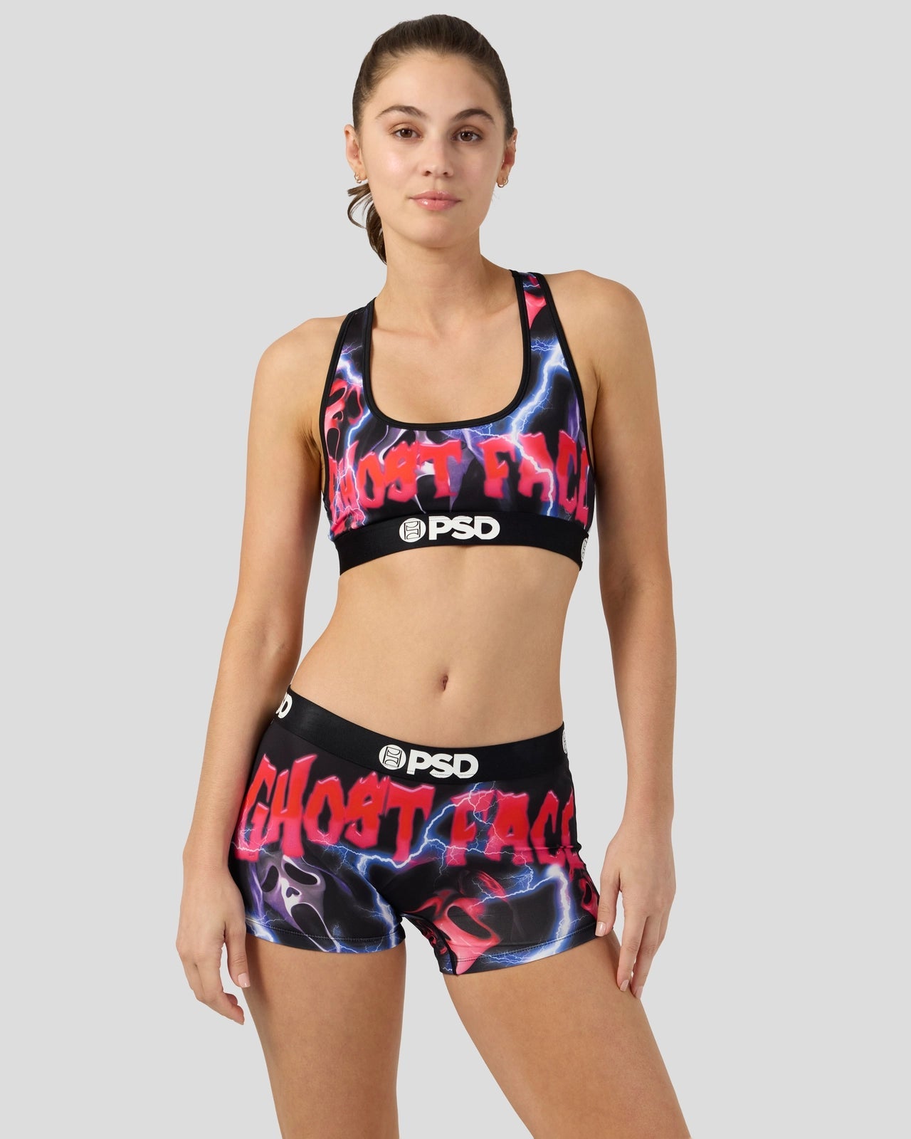 Do you like scary movies? Don’t miss this chilling new drop from Ghost Face x PSD. The Hype Boy Short is made from a silky poly blend with a comfortable full coverage, keep-you-in fit. The PSD boy shorts are perfect for everyday wear and working out.