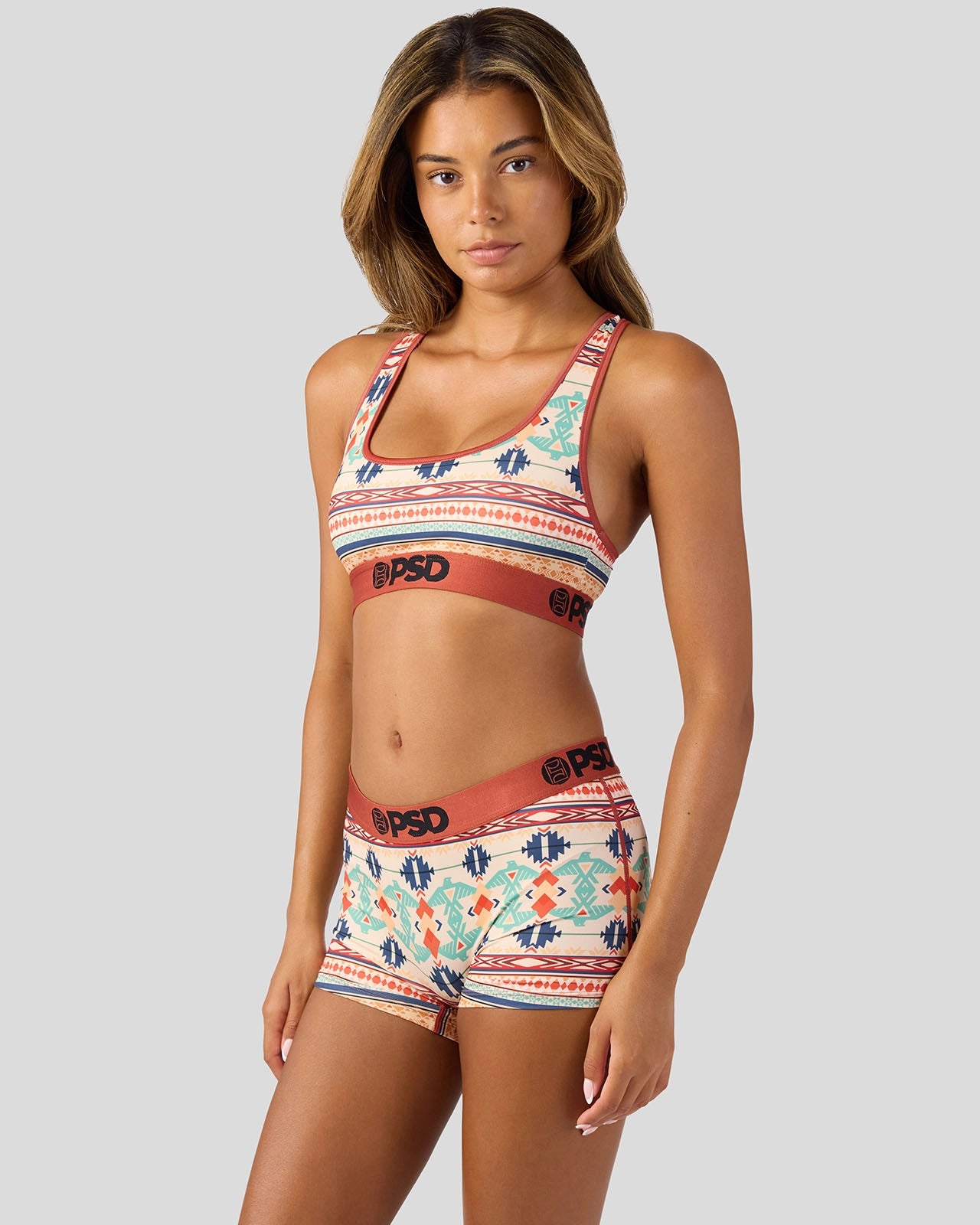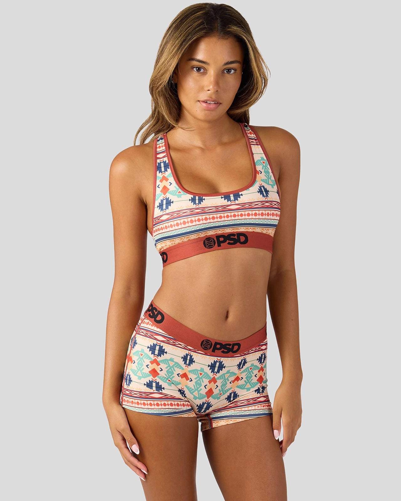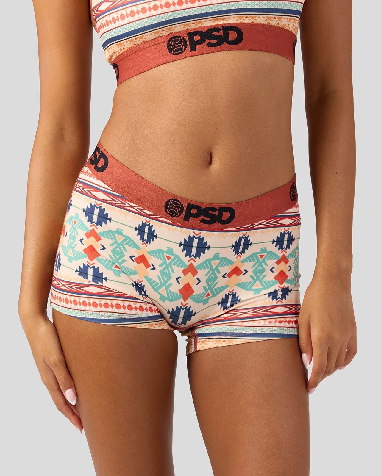 Drawn from one of their Southwestern-inspired prints, the Thunderbird Boy Short from Hooey x PSD is made from a silky poly blend with a comfortable full-coverage, keep-you-in fit. The PSD boy shorts are perfect for everyday wear and working out.