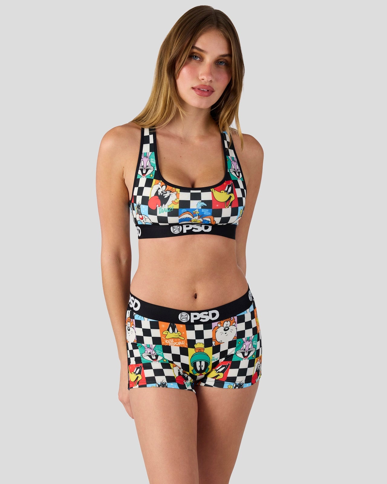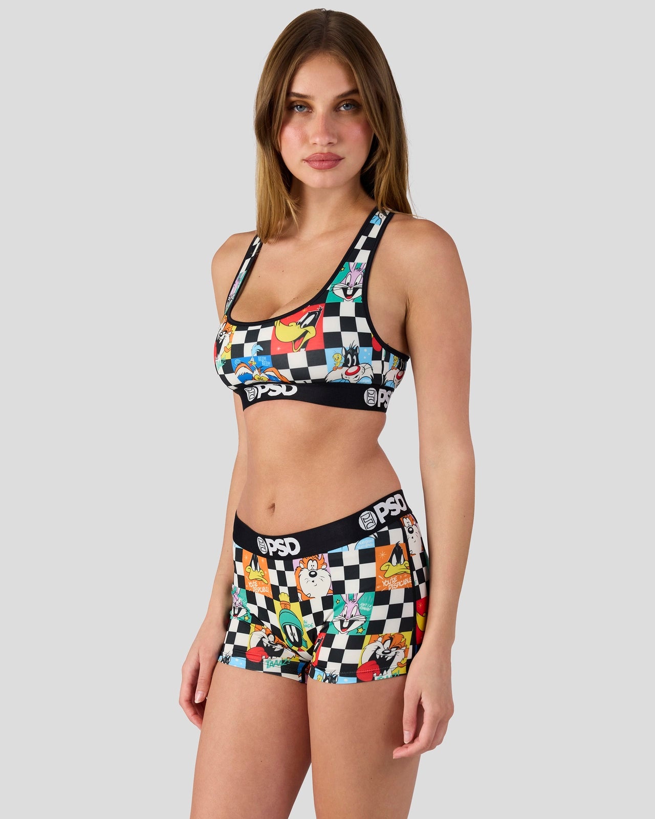 Featuring the whole Looney crew, the Check Sports Bra from Looney Tunes x PSD is made from a silky poly blend that???s breathable yet slightly compressive, bringing you the comfort and support you need for everything you get into.