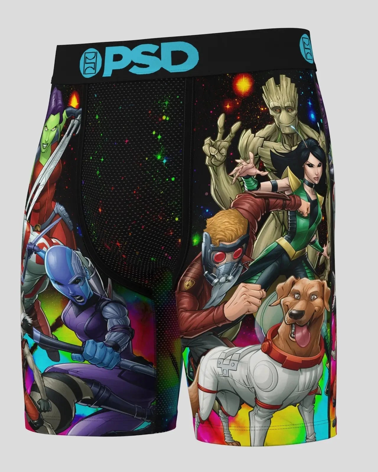 New from Marvel, suit up with the Guardians of the Galaxy and take your underwear game to another universe. Featuring Star-Lord, Rocket, Groot, and the whole crew, the GOTG Gang briefs include our ultra-comfortable Signature WaistBand, a breathable MicroMesh pouch, and four-way stretch. The PSD 7??? Standard Length Briefs won’t roll or ride and were built for everything, from everyday wear to your toughest workouts.