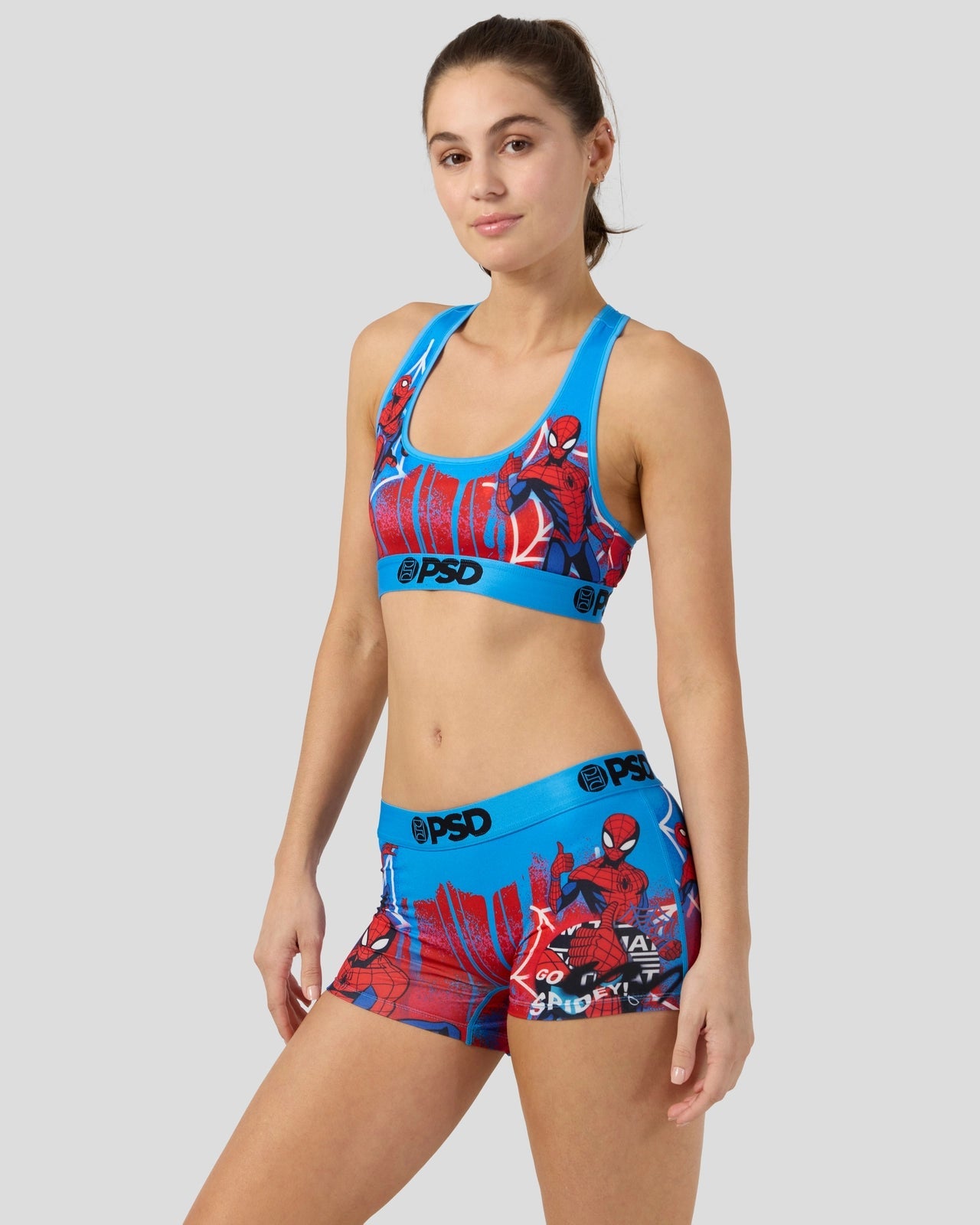Our latest Spider-Man style just swung into town. The Peter Parker Sports Bra is made from a silky poly blend and is breathable yet slightly compressive, bringing you the comfort and support you need for everything you get into.
