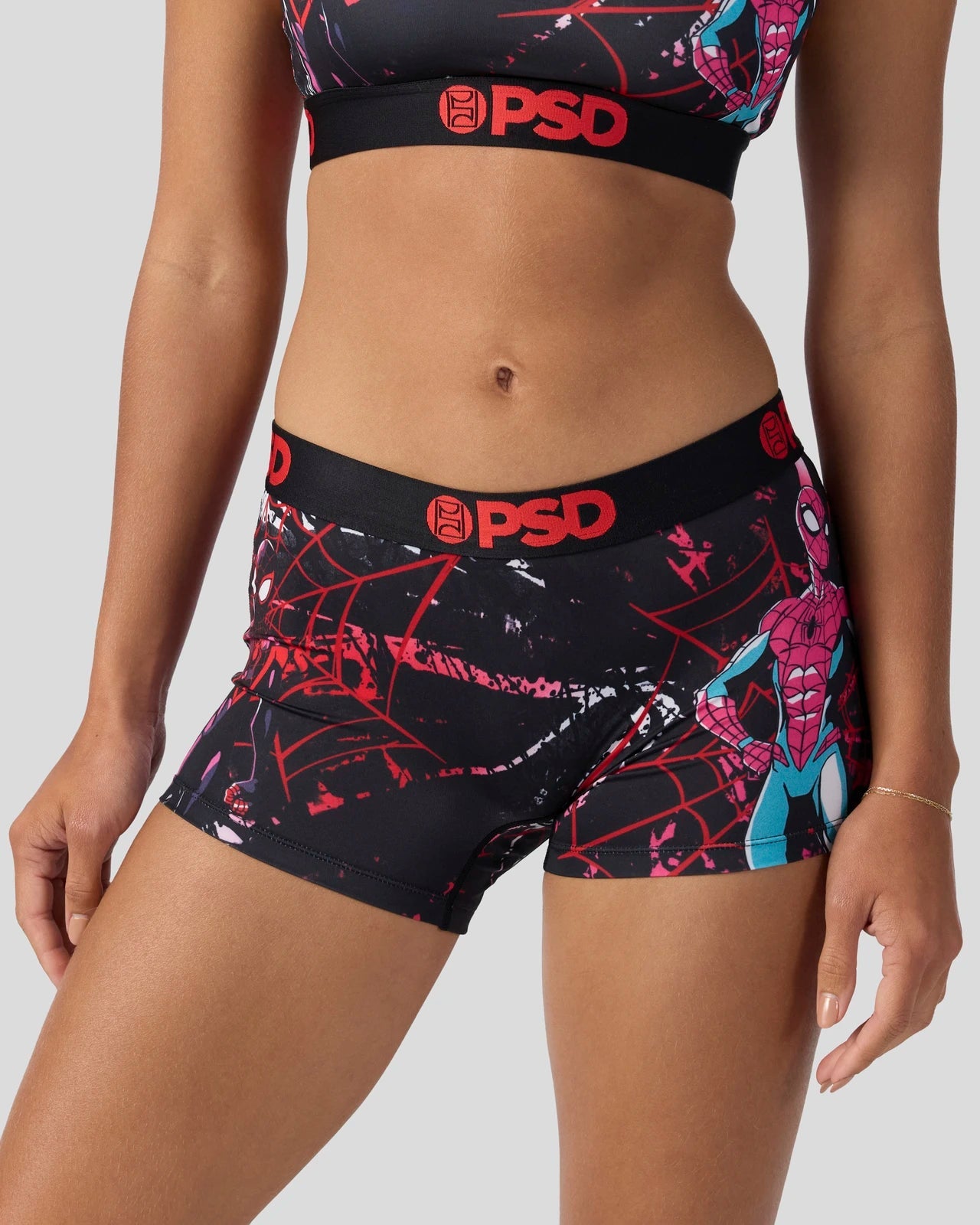 You???re not seeing double. Swing into new with this new Marvel pair featuring the spider duo. The Spider Bros Boy Short is made from a silky poly blend with a comfortable full coverage, keep-you-in fit. The PSD boy shorts are perfect for everyday wear and working out.