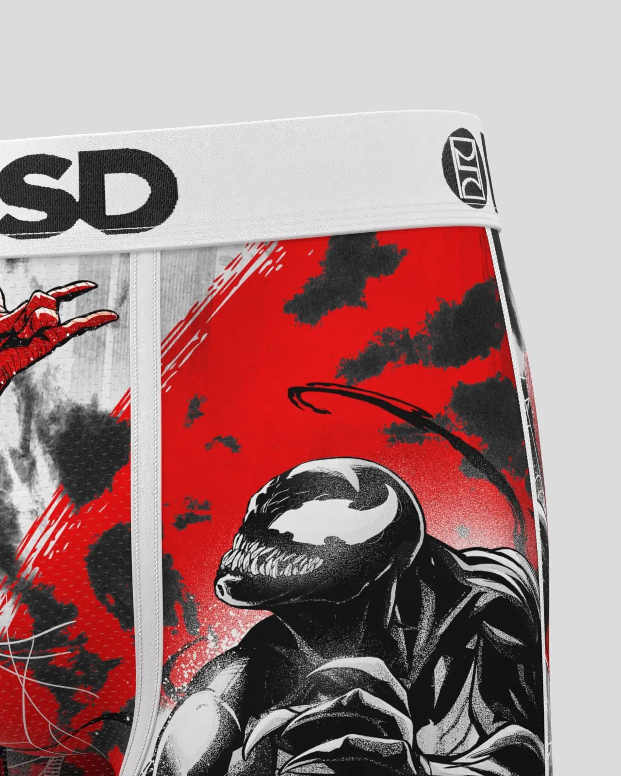The rivalry returns with this new pair from Marvel featuring Spider-Man and Venom. The VS briefs include our ultra-comfortable Signature WaistBand, a breathable MicroMesh pouch, and four-way stretch. The PSD 5??? Mid Length Briefs won’t roll or ride and were built for everything, from everyday wear to your toughest workouts.