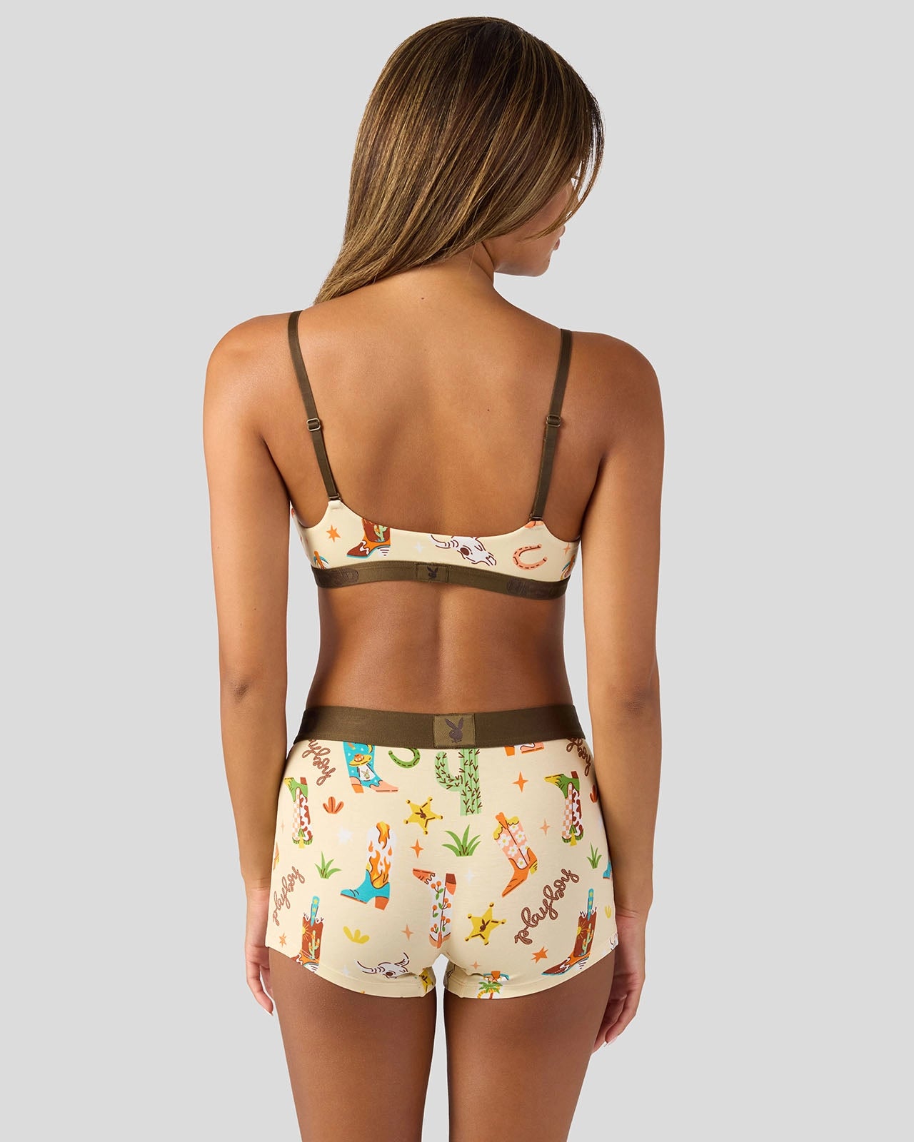 Cowboy cool meets playful edge with this new drop from Playboy x PSD. Made of a super soft modal blend, the Booted Modal Scoop Bralette almost feels like you’re not wearing a bra at all. It???s fully lined and features include adjustable straps, a cute scoop neckline, and a soft microfiber band that won’t ride or rub.