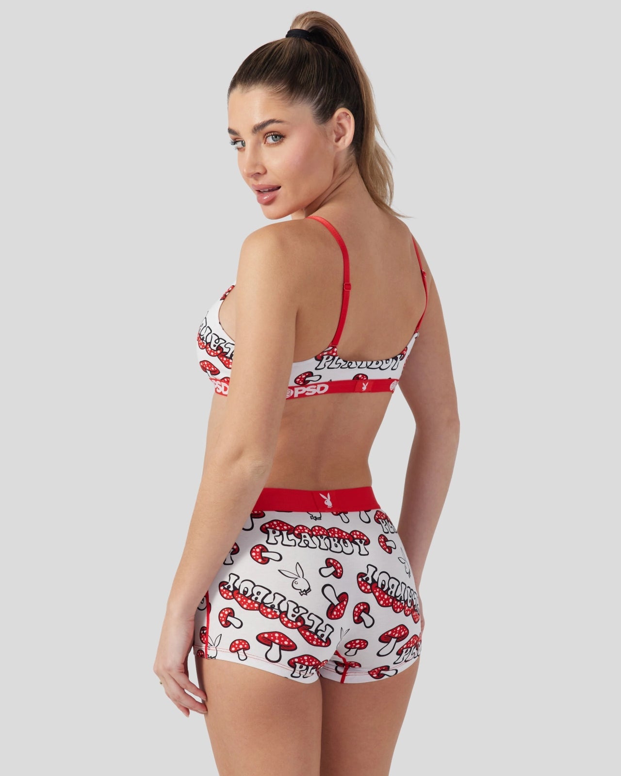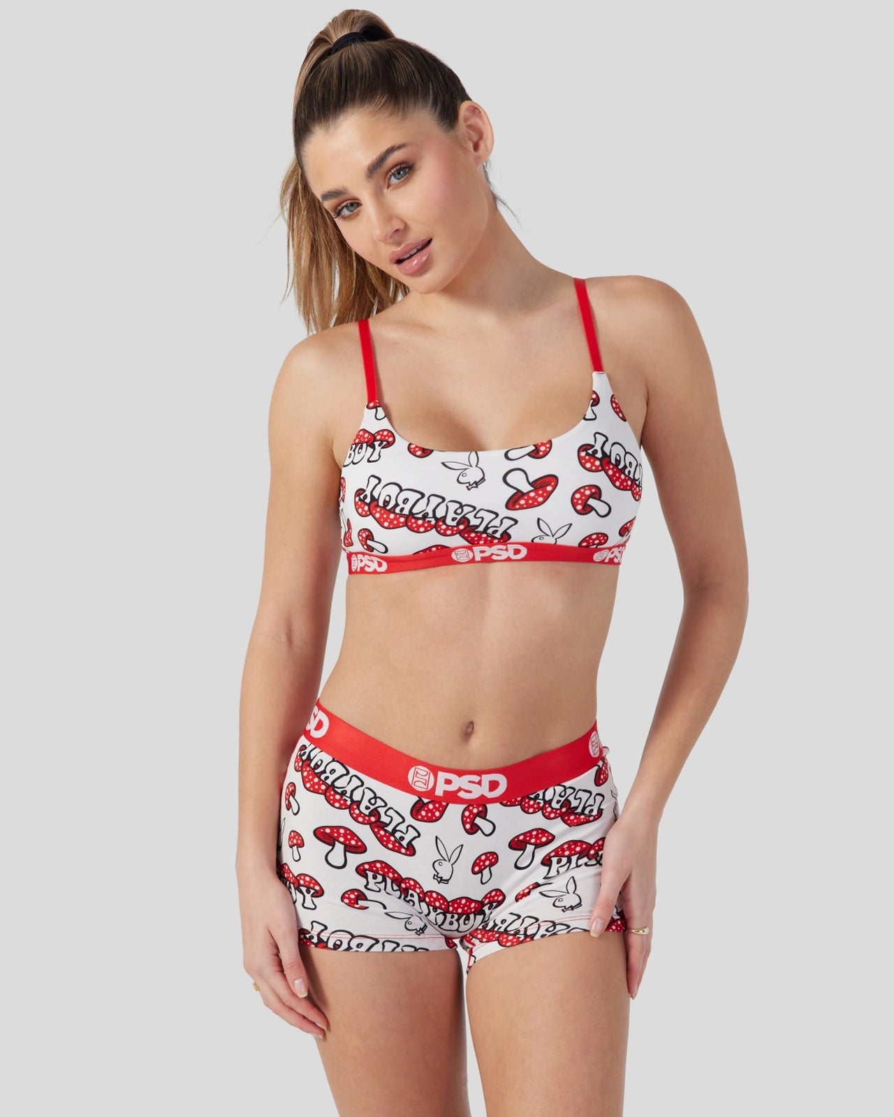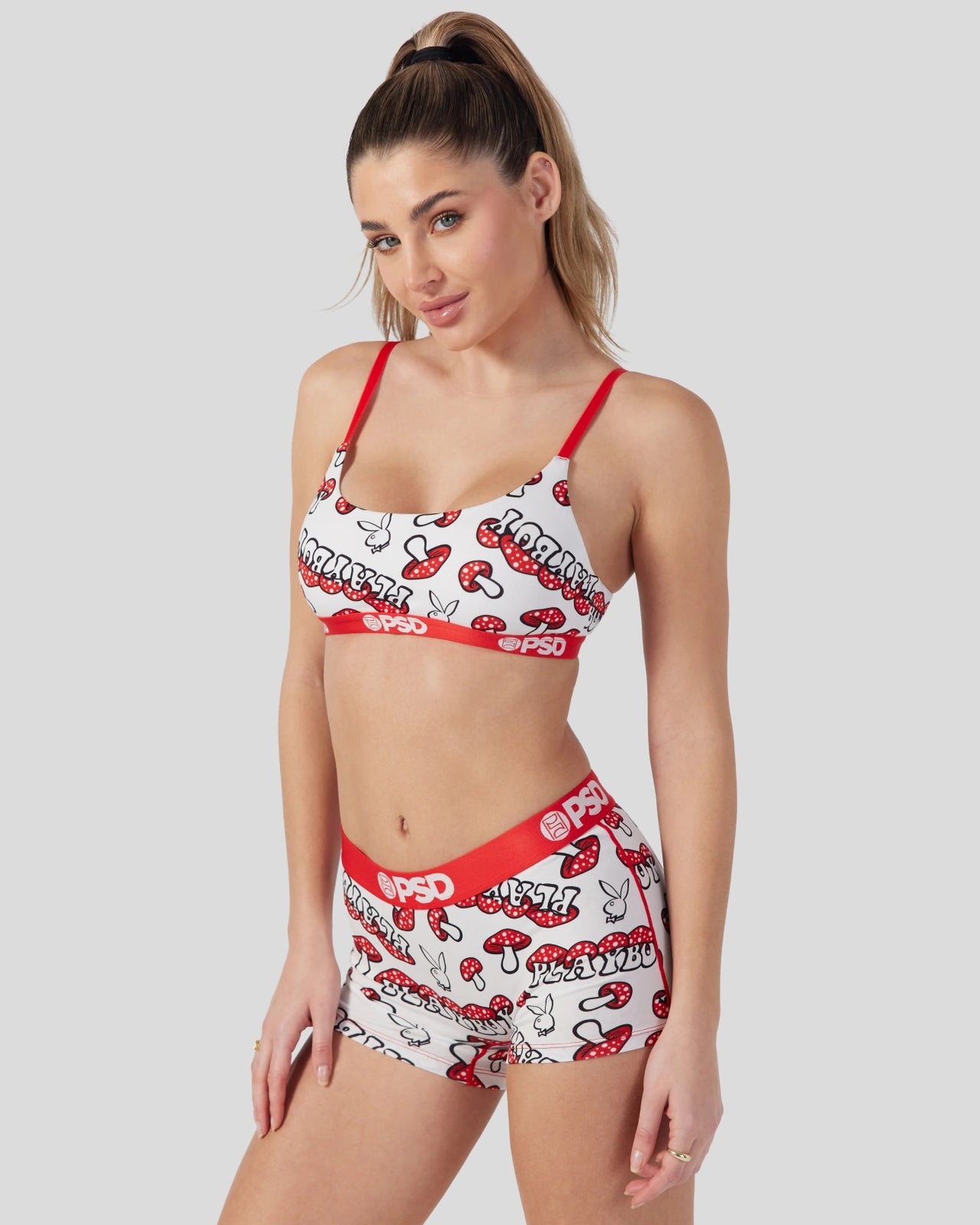 Meet the latest from Playboy x PSD. Made of our silky poly blend, the PSD Mushroom Scoop Bralette almost feels like you’re not wearing a bra at all. It???s fully lined and features include adjustable straps, a cute scoop neckline, and a soft microfiber band that won???t ride or rub.