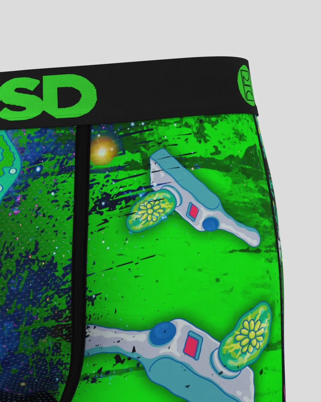 Get lost in the multiverse. The Portal Void briefs from Rick and Morty include our ultra-comfortable Signature WaistBand, a breathable MicroMesh pouch, and four-way stretch. The PSD 7??? Standard Length Briefs won’t roll or ride and were built for everything, from everyday wear to your toughest workouts.
