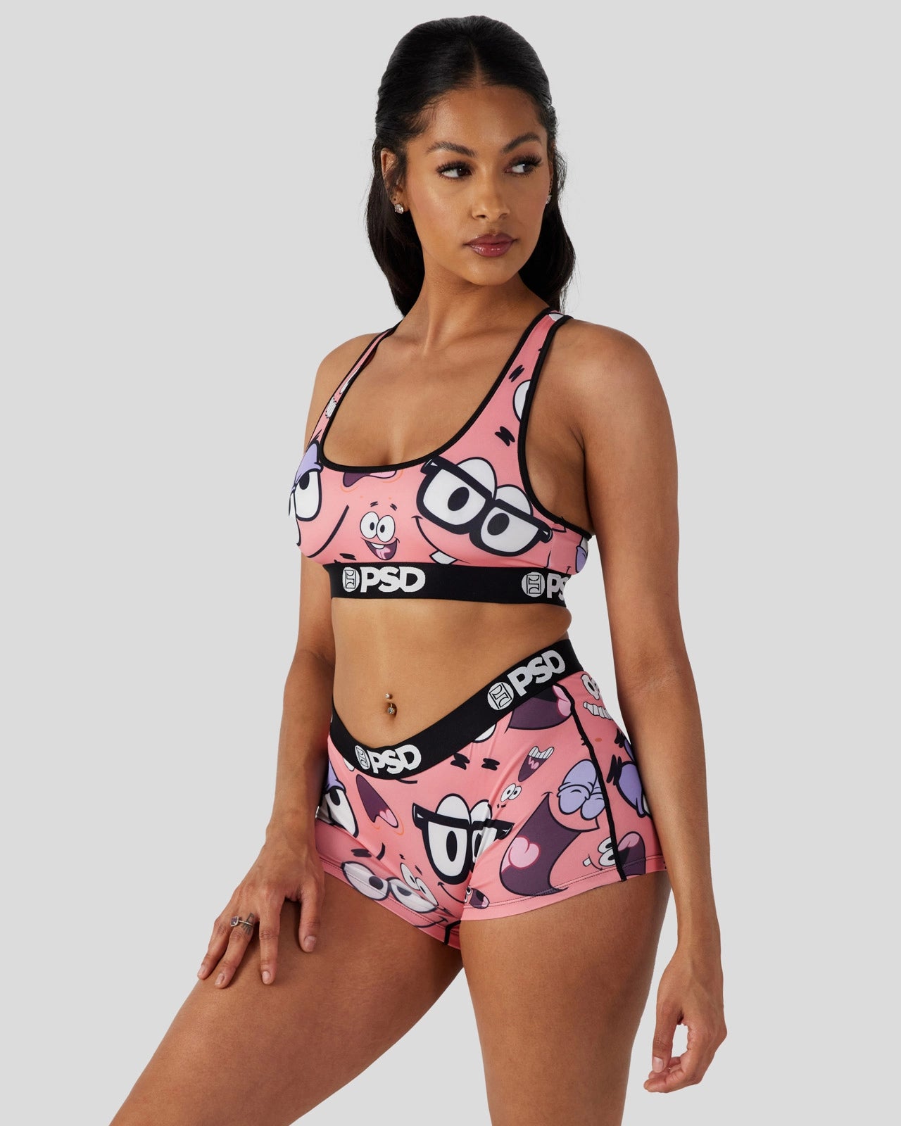 The latest from SpongeBob SquarePants x PSD features the many faces of everyone???s favorite starfish. The Patrick Faces Sports Bra is made from a silky poly blend and is breathable yet slightly compressive, bringing you the comfort and support you need for everything you get into.